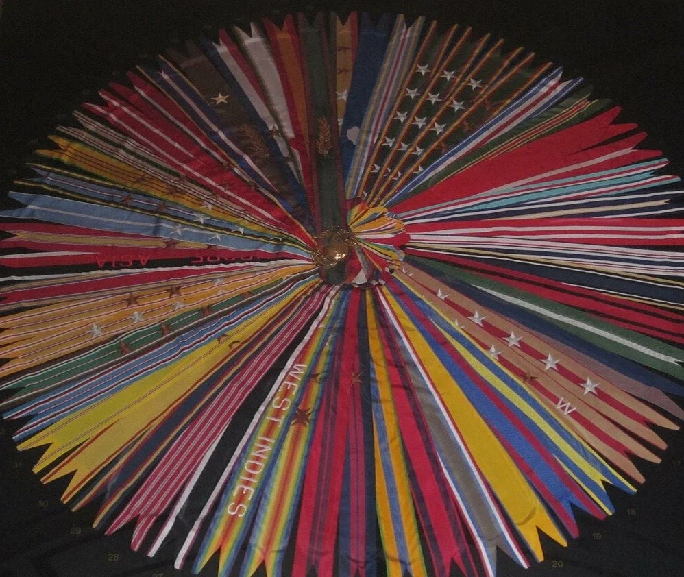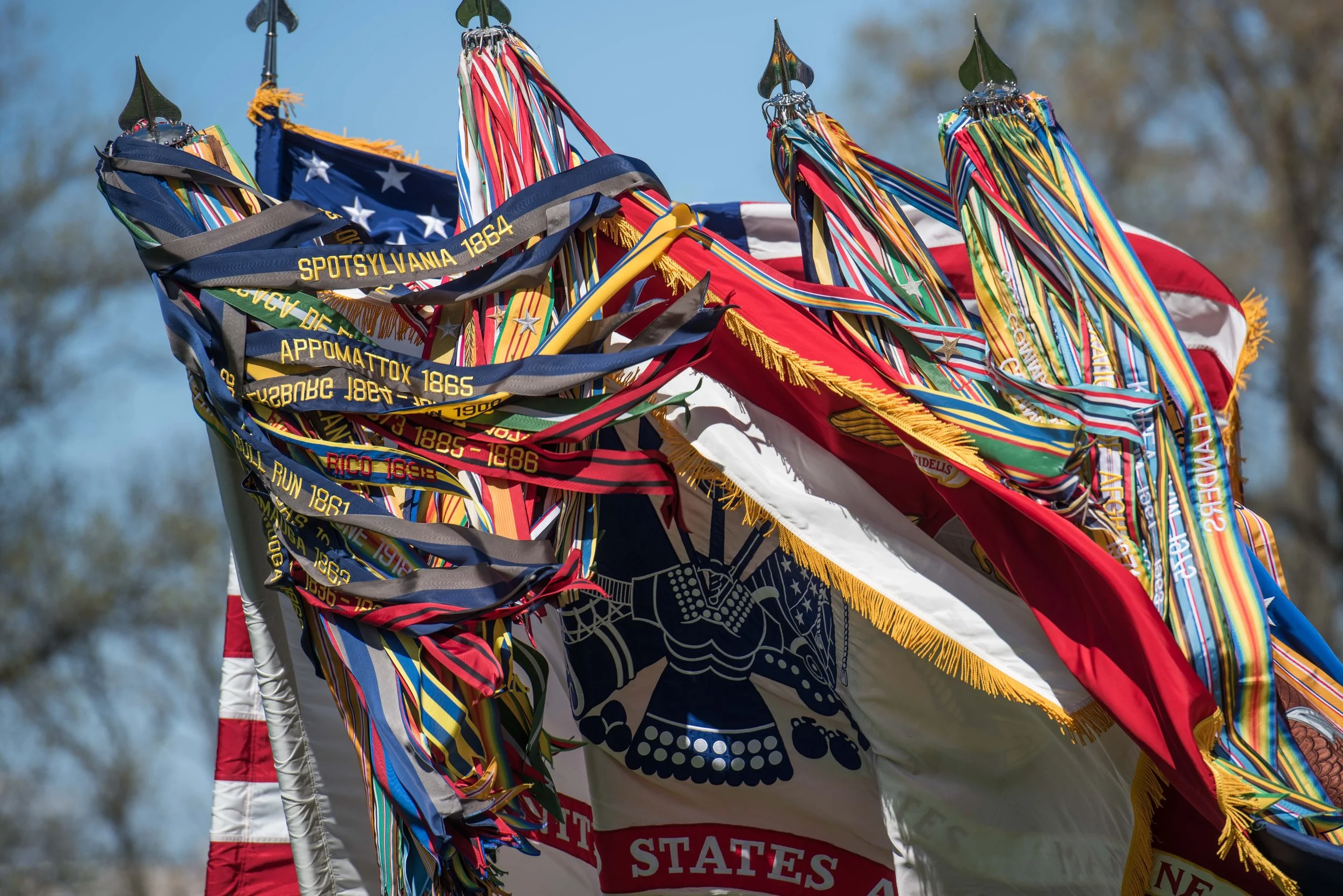 As I thought about banners and what they mean to us, I couldn’t help but picture the military flags we see so often. My mind’s eye immediately went to an idea we don’t see often in small town America, but once you’ve seen it, it can be so illuminating that it is hard to forget. The campaign streamer, is a thin long streamer added to the top of a flag with writing denoting a particular battle or campaign and the year. They are a tool for remembrance. A way to visually honor the combat history and achievements of a unit. Seeing a flag decked out with all of those streamers is amazing, especially when you consider that there one in there somewhere that says: Lexington 1775, the beginning fight for our nation.